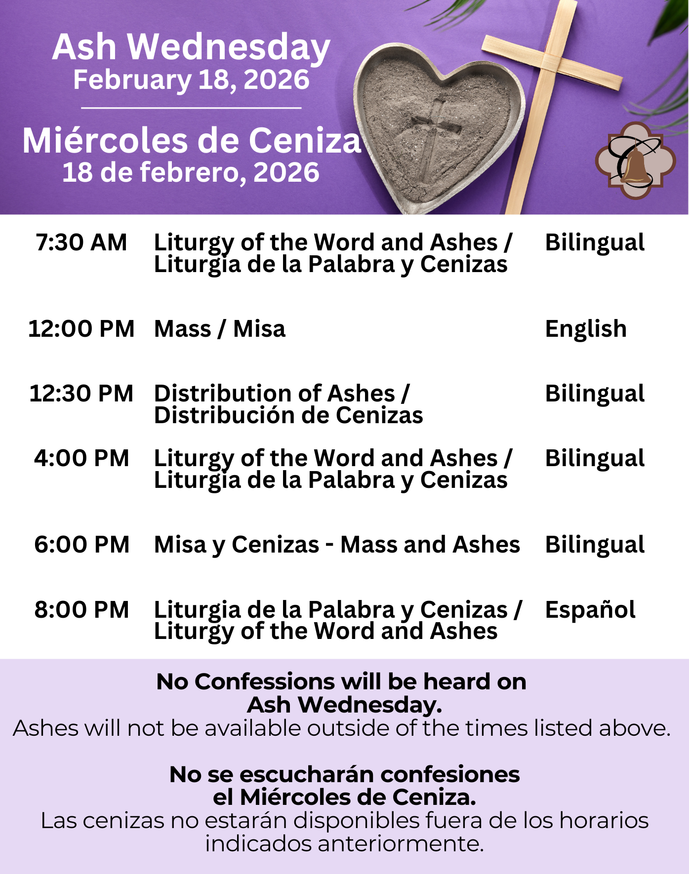 Es apropiado recibir las cenizas sólo cuando se participa en la celebración de la misa o en una liturgia de la palabra. No se distribuirán las cenizas fuera de la celebración de la misa o del servicio de la liturgia de la palabra. Tampoco es apropiado llevar las cenizas a alguien que está confinado en casa. No se darán cenizas para llevar a alguien con ese propósito como si hubiera participado de la misa o del servicio. Gracias por su comprensión.