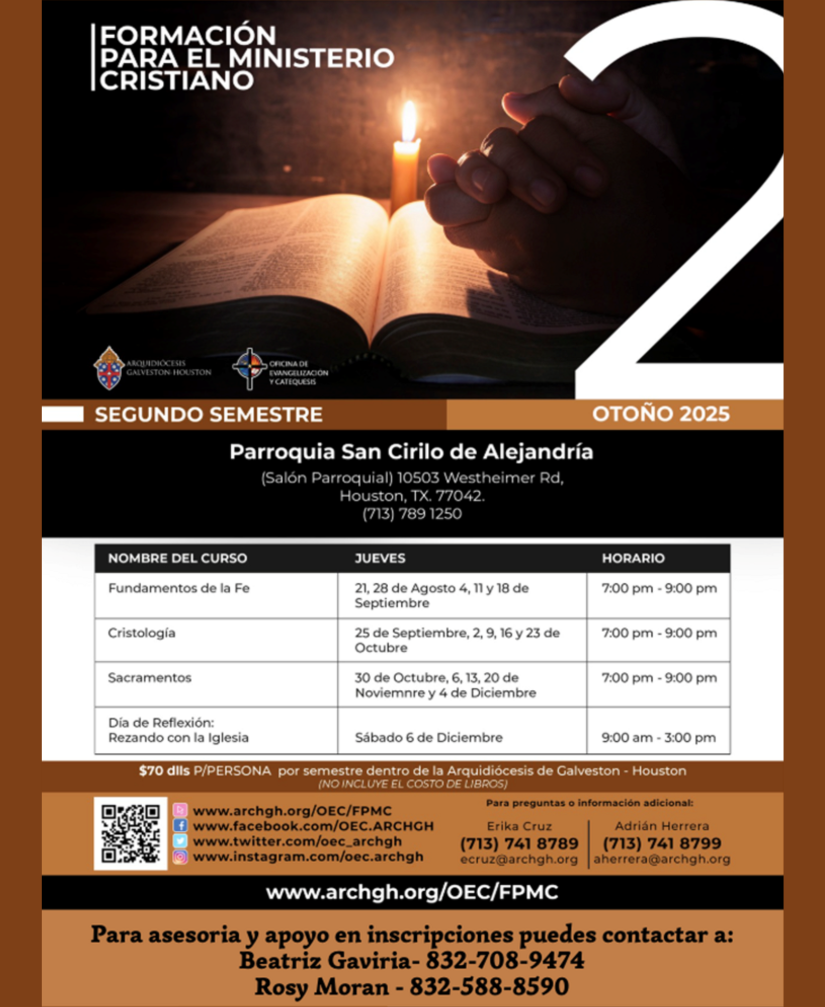 FPMC es un programa ofrecido por la Arquidiócesis de Galveston-Houston a traves de la oficina de Evangelización y Catequesis donde se ofrece una formación teológica, espiritual y bíblica basado en la doctrina Católica impartidos por instructores aprobados y calificados con grados de Maestría o Doctorado en las ramas de la Teología.